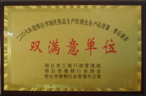 2007年邢臺市場民用品雙滿意單位